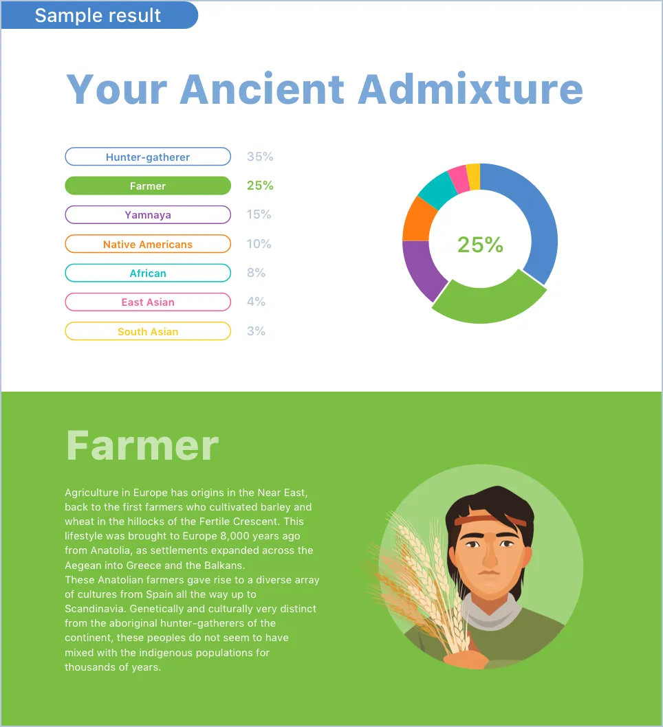 Your DNA tells you about your ancestry, a synthesis of a genealogy that spans space and time. Genomelink provides "Ancient" ancestry, a somewhat different window on your DNA than one is provided by other tests. Rather that who you are related to around the world today, we aim to provide you an insight about the historical events which converged upon you as an individual.