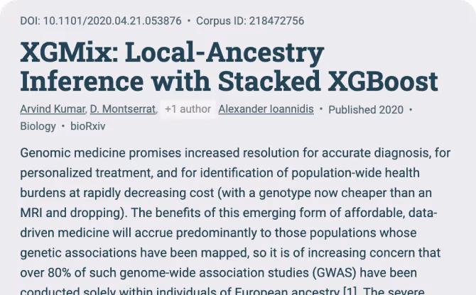 Dr. Alexander Ioannidis (PhD, MPhil) is a research fellow in the Stanford School of Medicine (Department of Biomedical Data Science), his work focuses on applying computational methods to problems in genomics and population genetics.